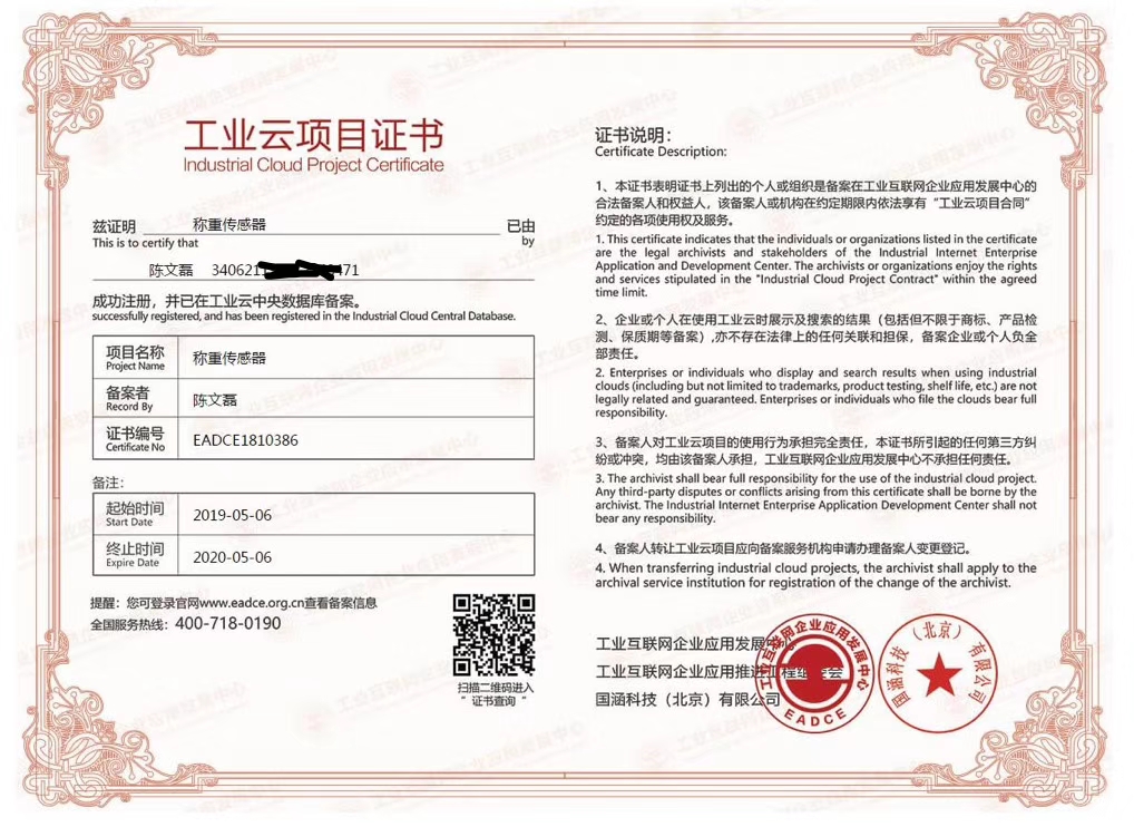 国家商务部工业云项目证书 工业互联网企业应用发展中心