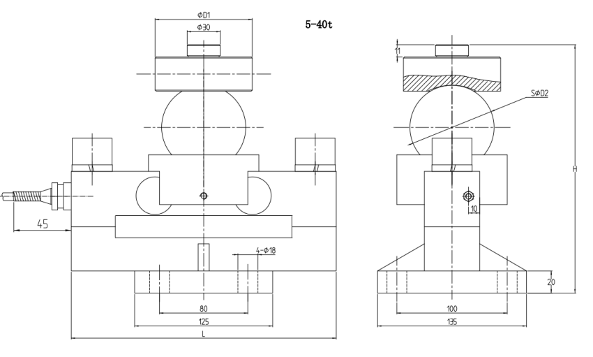 型号 | 量程(kN) | 量程(t) | D1 | D2 | H | L |