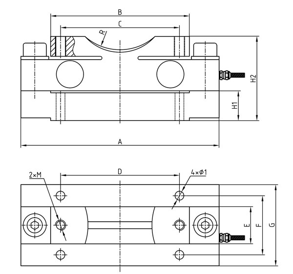 型号 | 量程(kN) | 量程(t) | A | B | C | D | E | F | G | H1 | H2 | M | R深 | φ1 |